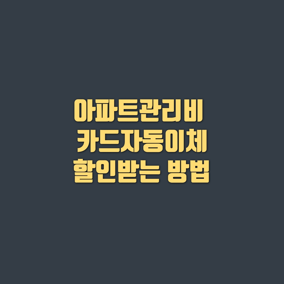 아파트 관리비는 보통 20만 원씩 나오는데, 카드 자동이체 금액이 전월 실적에 포함이 되는 카드가 하나 있으면 좋다. 카드 최소 실적은 보통 30만 원이므로, 카드 하나를 잘 고르면 아파트 관리비 1만 원 할인 정도는 받을 수 있다.